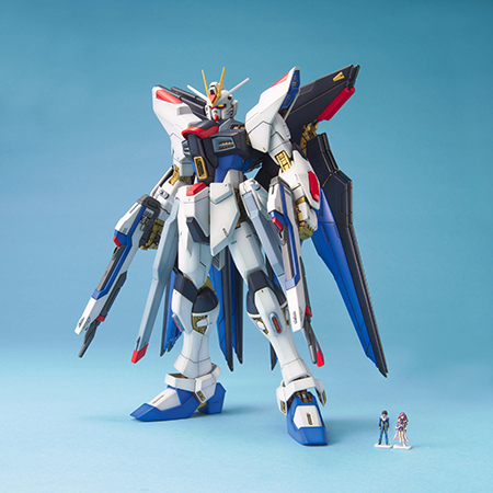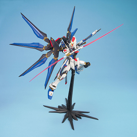 登场于人气动画《机动战士敢达seed destiny》,以1/100比例mg系列模型化;mg系列无论分色细节还是可动范围都表现优秀,可满足玩家对细节及实感的追求;附属龙骑兵系统、光束步枪、光束军刀等武器;光束步枪可以前后组装变形为长距离光束炮;龙骑兵系统可展开;侧裙甲的磁轨炮可展开变为射击模式。