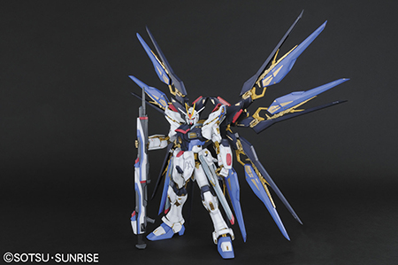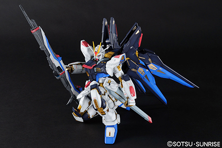 登场于动画《机动战士敢达seed destiny》;pg系列是万代模型事业部集创新技术之大成而创造出来的终极模型。通过1/60的超大比例套件再现,结构精细复杂,成品完成度高,即使素组也能高度表现敢达细节的精品。附属龙骑兵系统、光束步枪、光束军刀等武器;光束步枪可以前后组装变形为长距离光束炮;龙骑兵系统具有联动机构,可同时展开还原发射状态;侧裙甲的磁轨炮可展开变为射击模式;