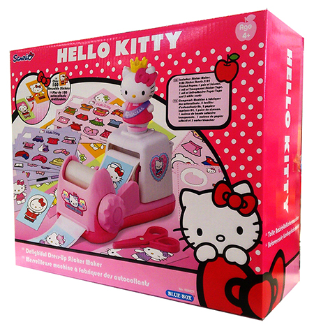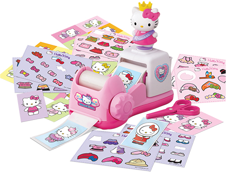 自由搭配服装、鞋子和包包贴纸并黏贴到hello kitty身上,经过贴纸机的制作,独一无二的hello kitty造型贴纸就完成了。