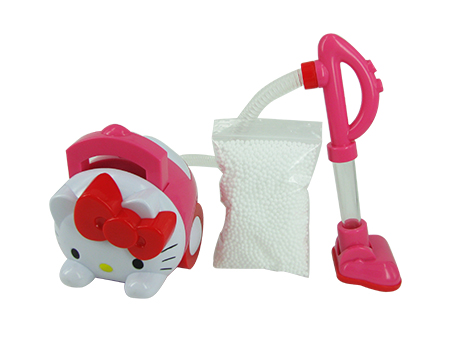 凯蒂猫电动吸尘器,仿真手把,板式吸头,更容易吸入细小灰尘,配有活动轮子和便携手提,更方便小朋友们帮妈妈做家务,配有小泡沫,供小朋友用吸尘器吸着玩。可循环使用。