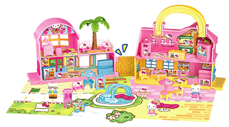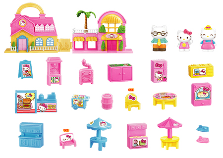 hello kitty 美食花园一次性满足你两个愿望!hello kitty带着粑粑麻麻,经营着快餐店和烘培蛋糕店呢!敞开房子,中间有一扇门链接着,左边是提供各种经典的快餐小吃,右边卖着各式可口的烘培蛋糕。吃货们还真可一天三餐都待在美食花园里,享受一场美食的洗礼~噢对了,还有手提柄方便携带哦!