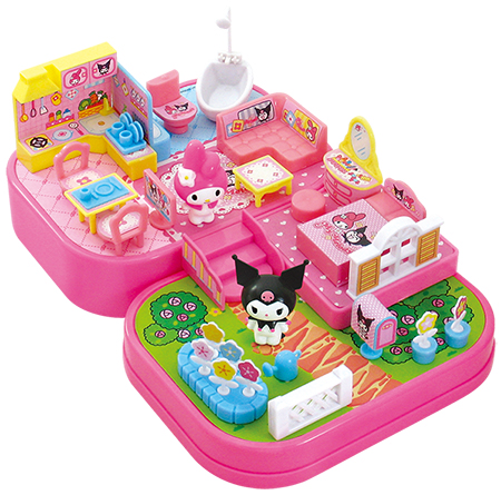 美乐蒂街角物语我的家包括一个地台,上面可以摆放客厅,睡房及厨房的不同家具,另加送美乐蒂及酷洛米两个小小人偶,完全将美乐蒂温馨的家呈现出来。