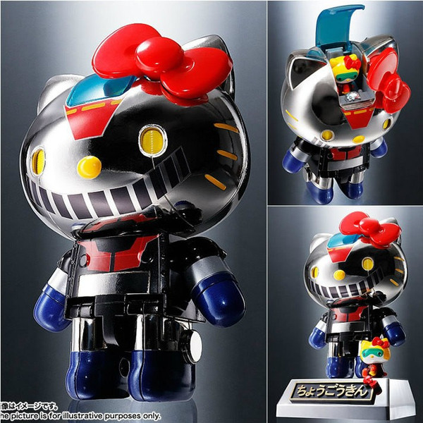 该产品出自于著名的动漫角色hello kitty,融合了著名的机器人角色魔神z的配色及细节元素,以超合金系列再现;赋予其全新的造型以及丰富的玩点。