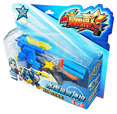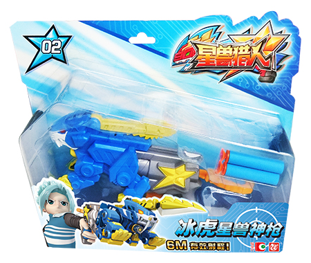 由冰虎兽和星兽枪柄组合而成,重现动画中造型的枪型武器, 每次可发射单发兽能弹, 射击距离可达6米 使用专用数兽能弹 产品包含兽能弹2发