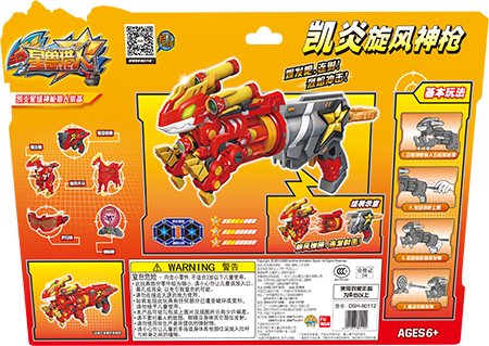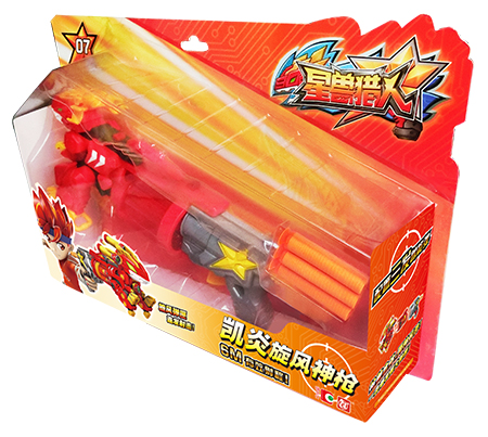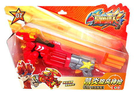 由凯炎兽、旋风转轮和星兽枪柄组合而成的凯炎旋风神枪. 可一次装入5发兽能弹、通过上膛和扣动扳机的交替动作实行连续发射. 射击距离可达6米. 使用专用兽能弹. 产品包含兽能弹3发